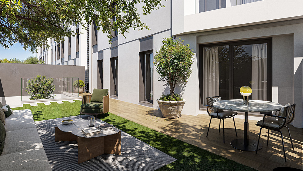 El Residencial Zigurat está concebido y diseñado como una obra de arte que sirve de homenaje a la antigua Babilonia. Solo hay que cruzar la puerta principal para comprobarlo. Y lo harás en cuanto llegues al jardín, diseñado al milímetro y en exclusiva para Residencial Zigurat. Su recorrido te conduce de forma natural hasta la piscina y al discreto solarium refrescado por plantas colgantes. A lo largo de su recorrido, relajado, sin prisa, respirando su íntima fragancia, alcanzarás el jardín infantil. Y en el centro de este parque se yergue el monumento que da nombre a tu futura urbanización: una escultura tipo Zigurat.